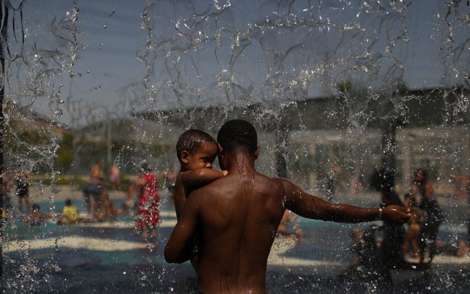 Menschen kühlen sich im Madureira Park in Rio de Janeiro, Brasilien ab.