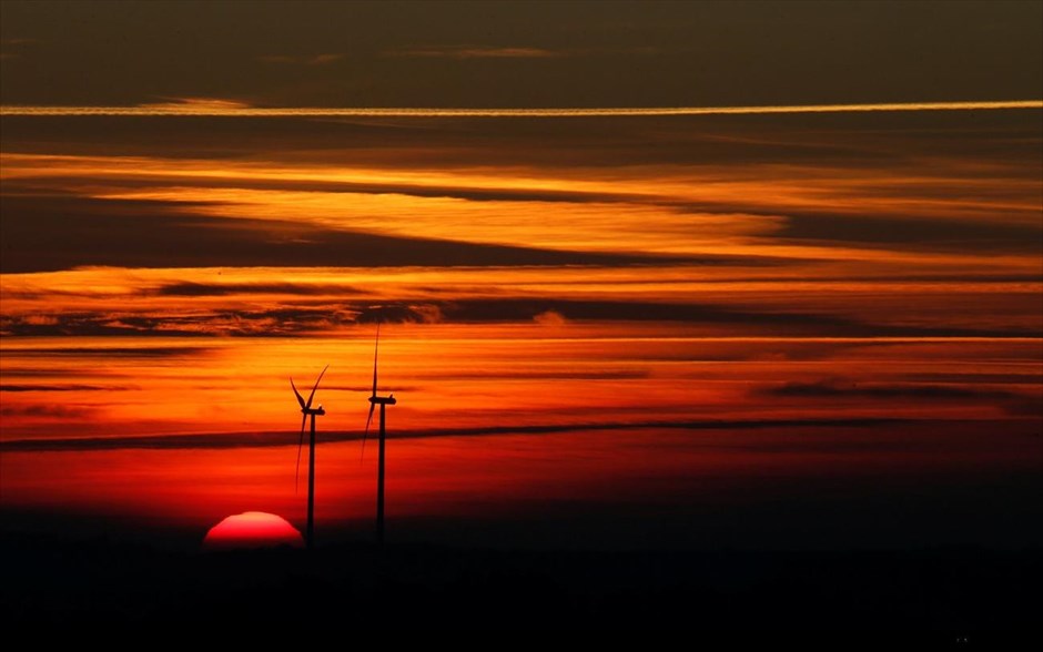 Sonnenuntergang, außerhalb von Campbourg, Frankreich.